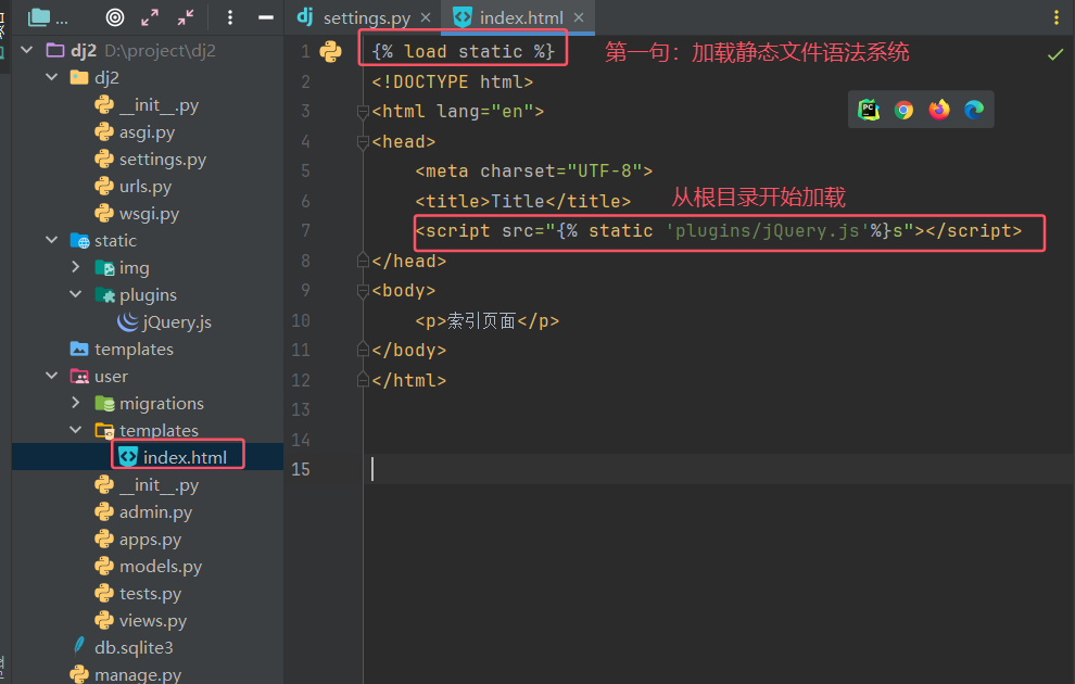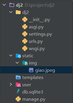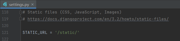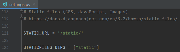 settings.py中默认有STATIC_URL = '/static/',该配置类似于访问静态文件的令牌