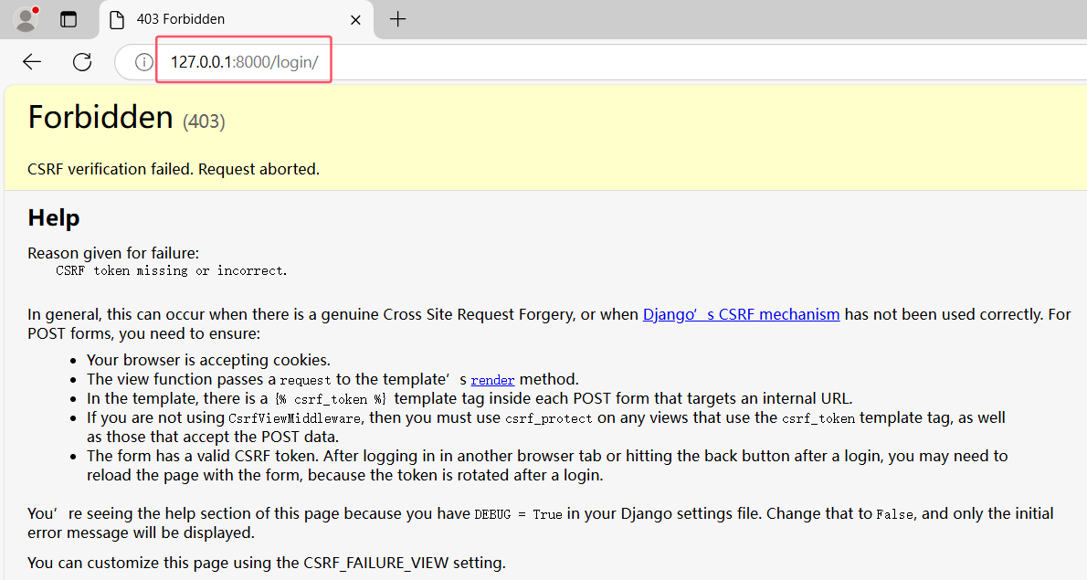 报了以上错误,解决方法是将settings.py中MIDDLEWARE的csrf相关注释掉
