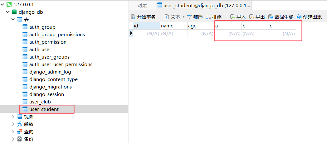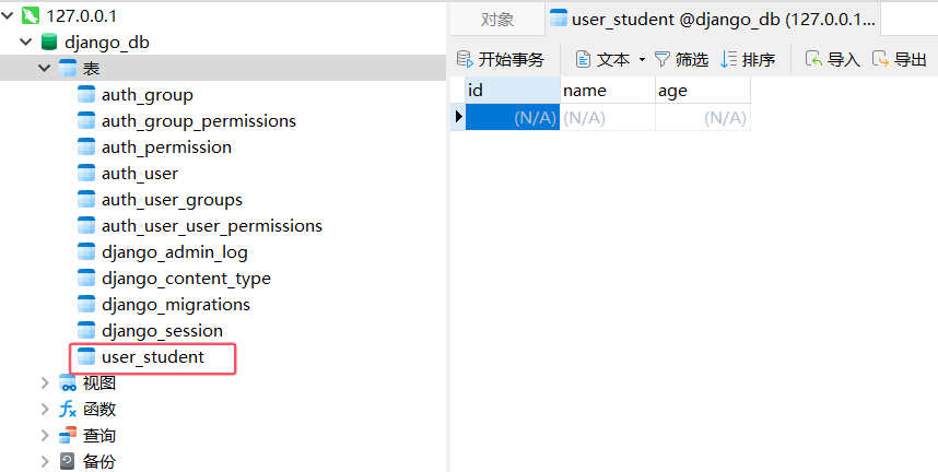 以上从python类同步到数据库后,表名称为:应用名_类名