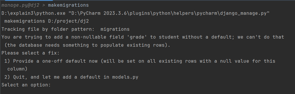 1) 现在提供一次性默认值(将在所有现有行上设置此列的空值)