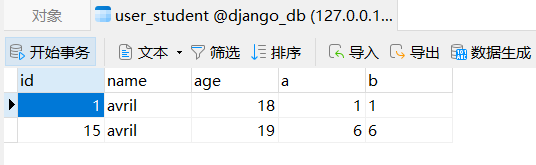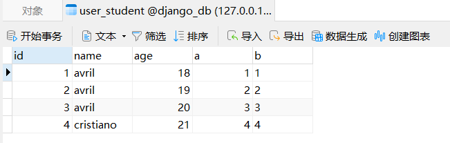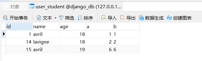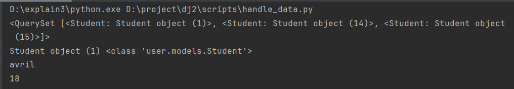 result = Student.objects.filter(name='avril').first() # 获取第一条符合的记录