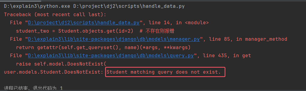 student_two = Student.objects.get(id=2) # 不存在则报错