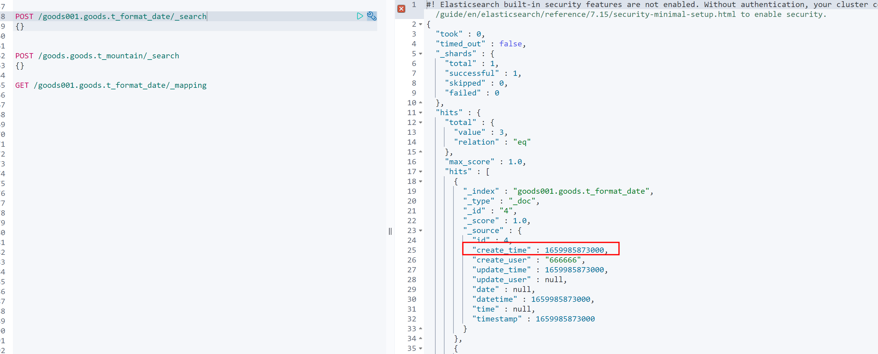 (2)es中时间就是用date类型,表现形式就选择时间戳或者"yyyy-MM-dd HH:mm:ss",后者的优点就是可读性较强!