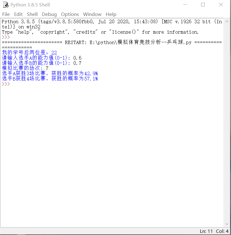 b = eval(input("请输入选手B的能力值(0-1): "))