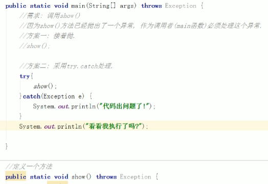 - 有: 跳转到catch(){}语句中开始执行,在执行finally{}语句中的内容