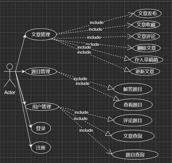 根据上面的需求分析,设计相应的用例图