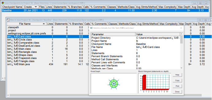 因为我按照pta的要求把所有类放进同一个文件了,所以分析结果只有总行数非常高,其它数据无法得出。