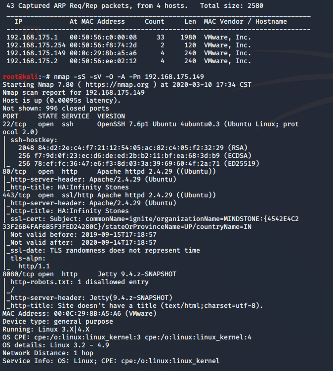 运行环境:攻击机kali linux和主机 靶机HA: Infinity Stones
