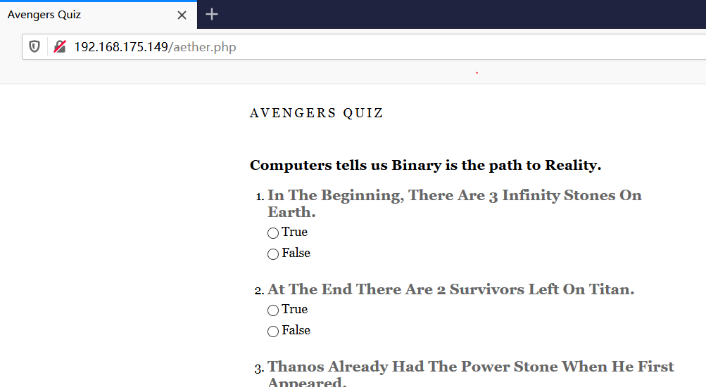 Thanos thinks that if he kills half of all life in the universe, he’ll restore balance. To do so, he needs all six Infinity Stones to power his Infinity Gauntlet, which in turn will give him the ability to bend time, space, energy, and the laws of physics and reality. But the Avengers are one step ahead of Thanos this time. Avengers have hidden all the Infinity Stones all over this CTF. Help Thanos to get all the Infinity Stones and restore the balance of the universe.