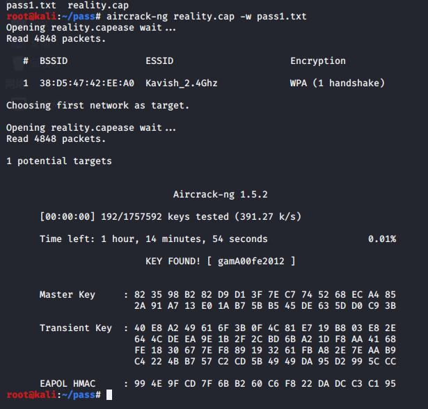生成密码字典,然后用aircrack-ng工具破解WPA加密的wifi (aircrack-ng是一个与802.11标准的无线网络分析有关的安全软件)