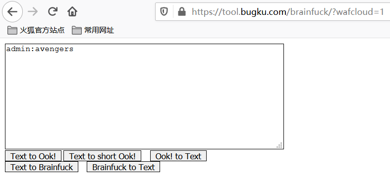 BrainFuck编码(https://tool.bugku.com/brainfuck/?wafcloud=1)解码后:admin:avengers
