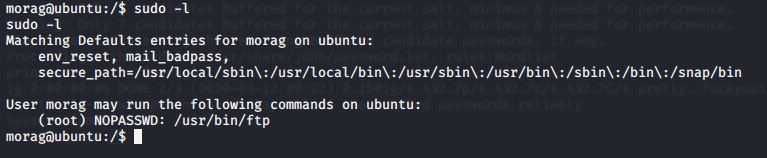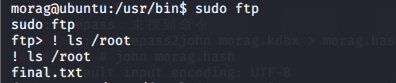 列出用户能以sudo方式执行的所有命令,发现有ftp的root权限