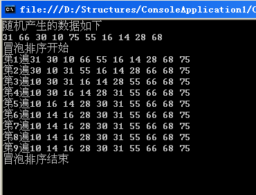 Console.WriteLine("冒泡排序结束");