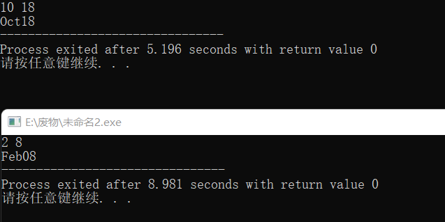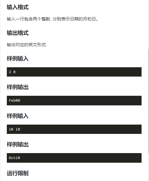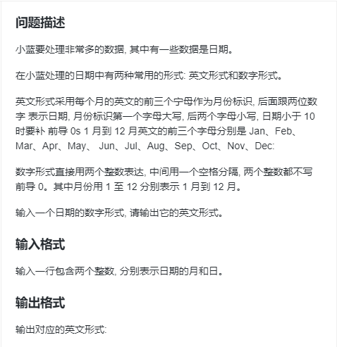 1.这题的主要迷惑点在于月份的输出,我们输出月份的英文字母时,可以建立一个二维数组,注意,必须是二维数组,二维数组中第一个用来存放月份,第二个分别存放月份的三个字母。