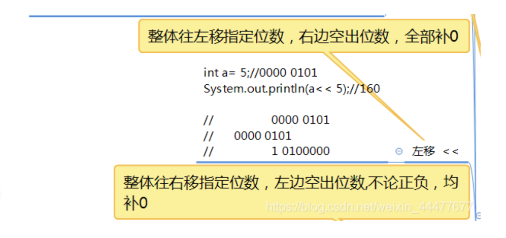 - 位运算符:&(与), |(或), ^(异或), ~(取反), >>(右移), <<(左移), >>>