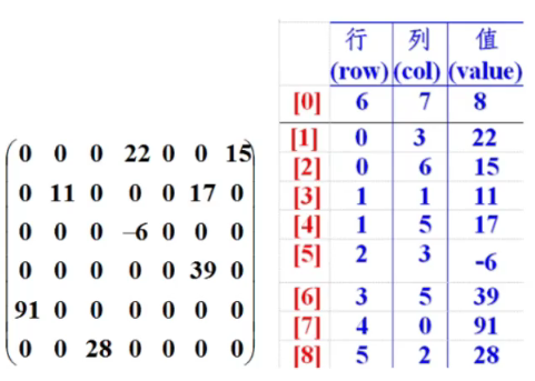 - 把具有不同值的元素和行列及值记录在一个小规模的数组中,从而缩小程序的规模