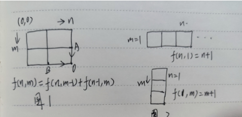 1 """ 2 用递归解决,动态规划还没学会😂 3 首先找出递归方程,可以画图理解,如图1,要想到达终点0,有两条路线,分别是A,B, 4 所以可以得到f(n,m)=f(A)+f(B)=f(n,m-1)+f(n-1,m). 5 然后需要找出出口条件,递归方程计算到最后,肯定会有f(A)=f(n,1),f(B)=f(1,m),所以要 6 找出n=1和m=1时的值,通过图2发现,m=1时f(n,1)=n+1,同理n=1时,f(1,m)=m+1 7 """ 8 9 def func(n,m): 10 if n==1: 11 return m+1 12 elif m==1: 13 return n+1 14 else: 15 return func(n-1,m)+func(n,m-1) 16 while 1: 17 try: 18 n,m=map(int,input().split()) 19 print(func(n,m)) 20 except: 21 break