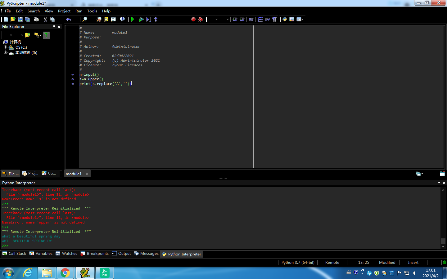 n=input() s=n.upper() print(s.replace('A',''))