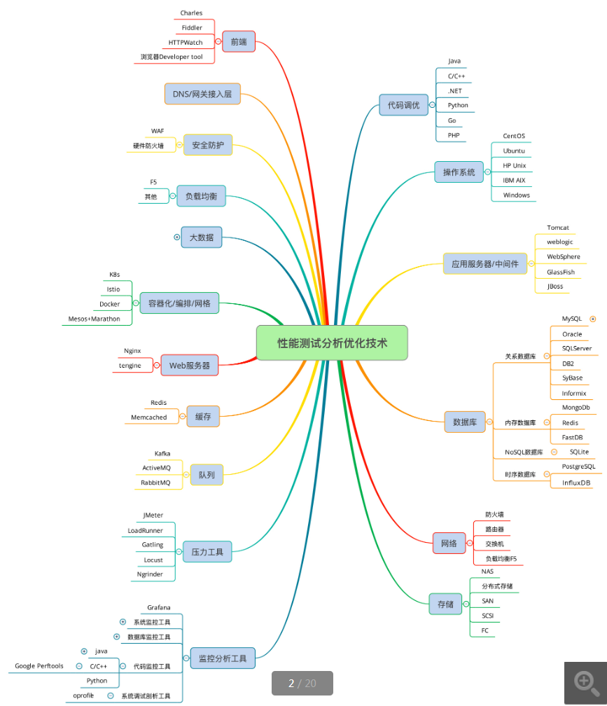 这张图是我认为在一个性能测试中,该有的技术图谱。