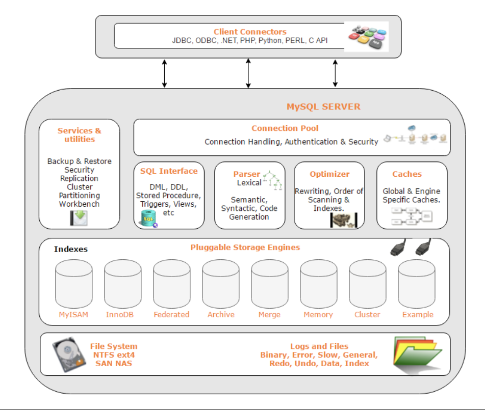 我们再说DB层,以MySQL为例。和上面的理念一样,我们也要看架构图。