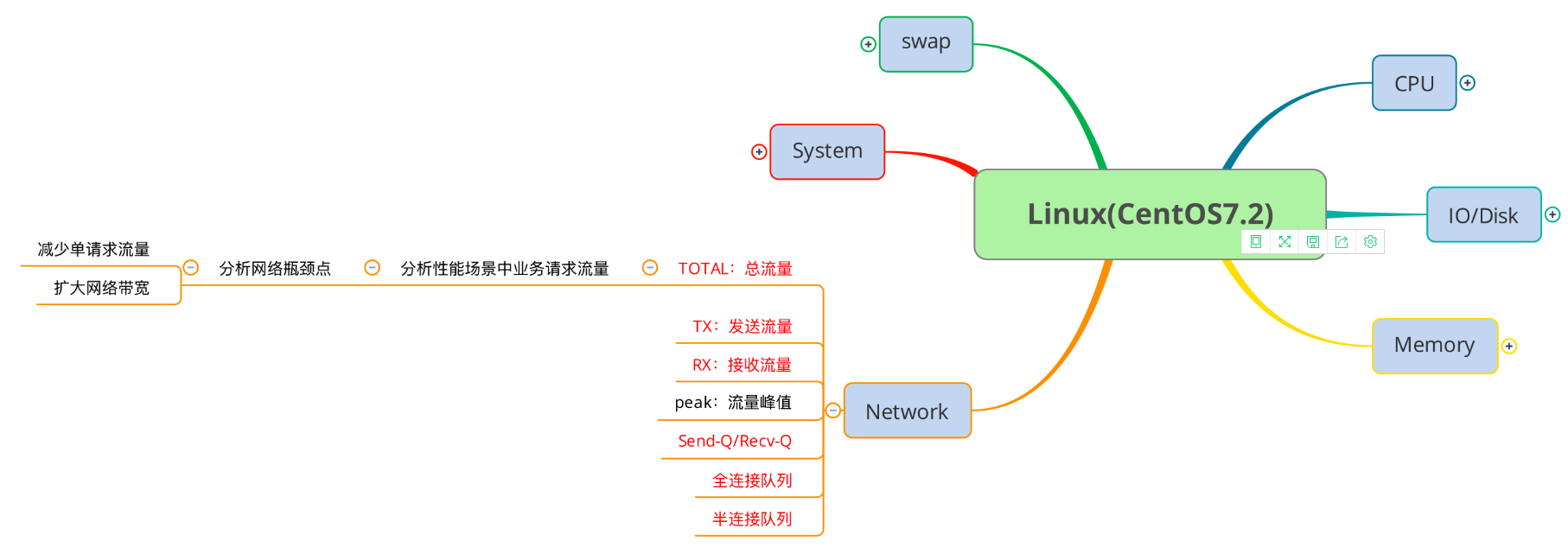 当你看到OS全局监控图中的Network中的Total总流量比较大时,就要有这样的分析思路(从右向左看):