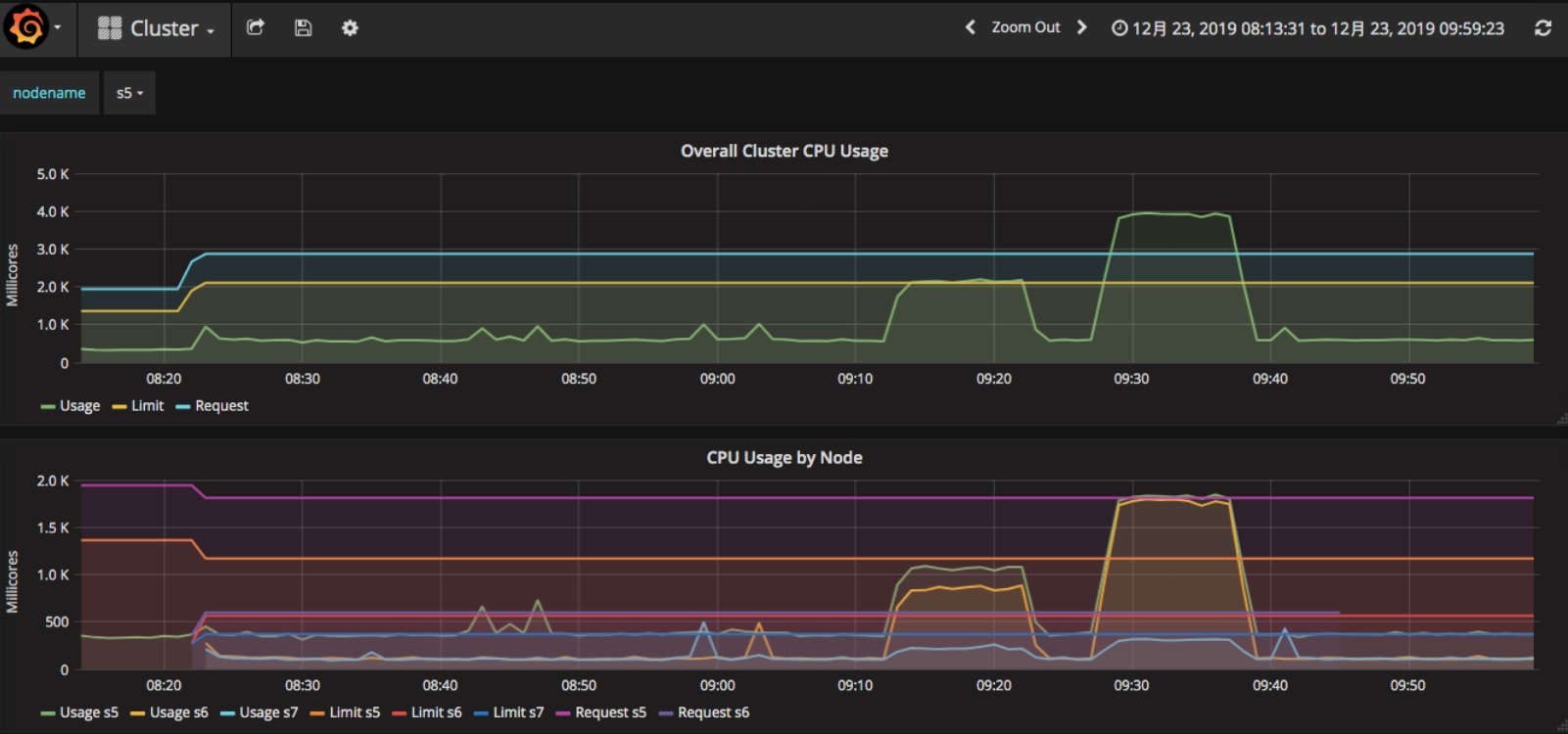 然后再实现相应的全局监控。我们可以在Kubernetes+Docker下可以看到这样的部分全局监控数据。
