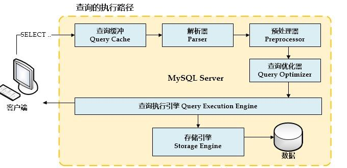 2)服务器先检查查询缓存,如果命中了缓存,则立刻返回存储在缓存中的结果。否则进入下一阶段;