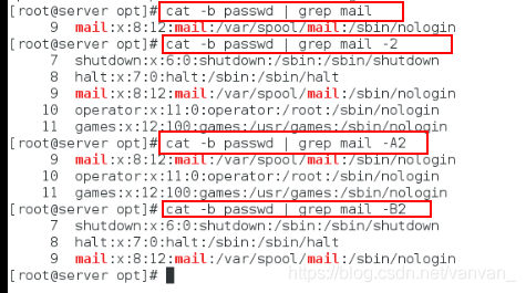 cat -b passwd | grep mail ##默认显示mail所在行