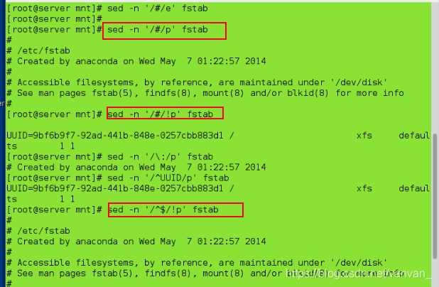sed -n '/#/p' fstab ##显示#所在行