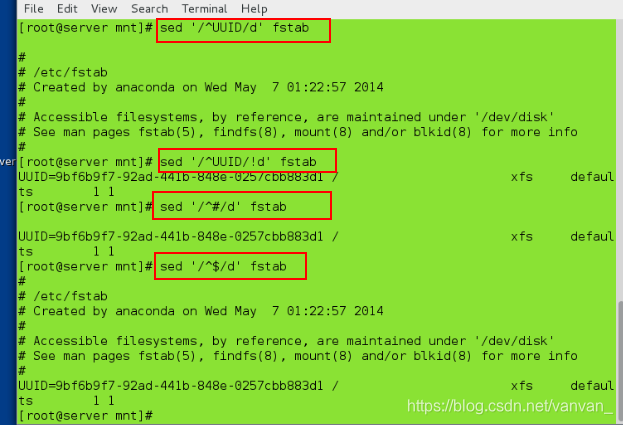 sed '/^UUID/d' fstab ##删除UUID所在行
