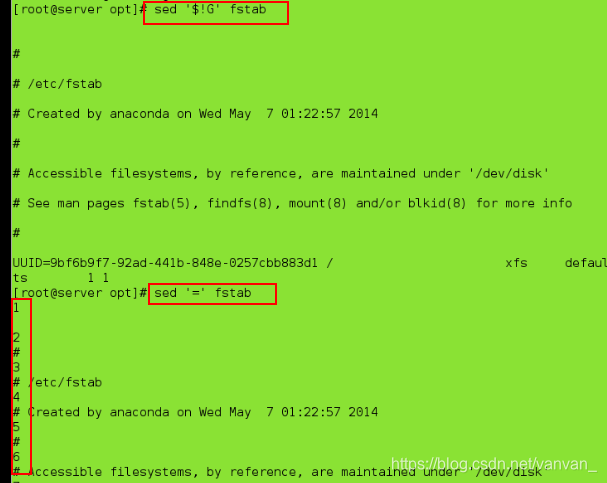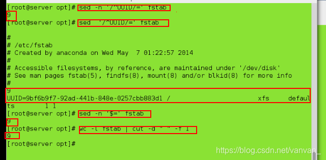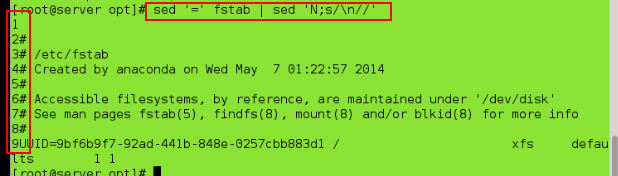 sed '/^UUID/=' fstab ##将行数放到UUID所处位置