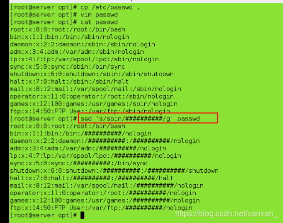 sed 's/sbin/#########/g' passwd ##将文件所有sbin替换成########