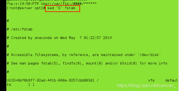 sed 'G' fstab ##在每一行后面添加一个空白行