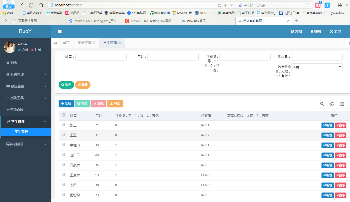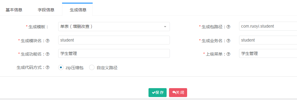 3、运行ruoyi,在系统工具-代码生成 中导入新建表tb_student