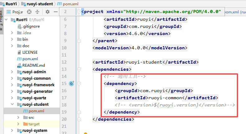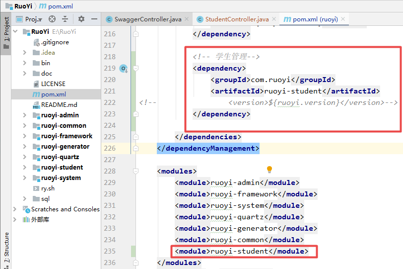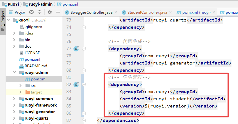 ruoyi-admin 添加业务子模块的依赖