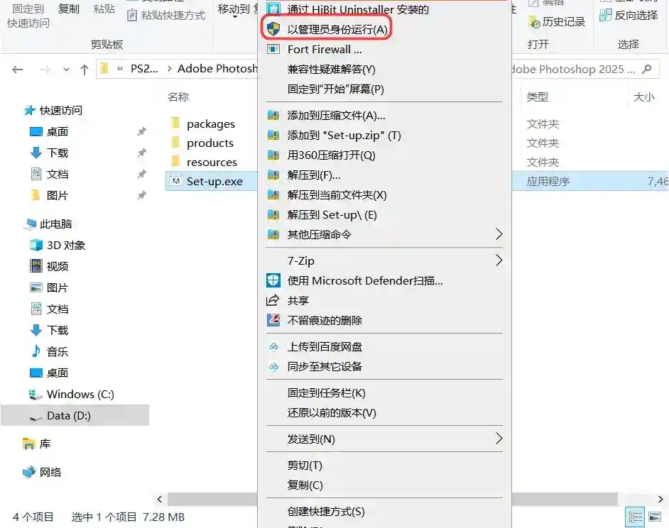 第二、右键点击Setup以管理员运行安装