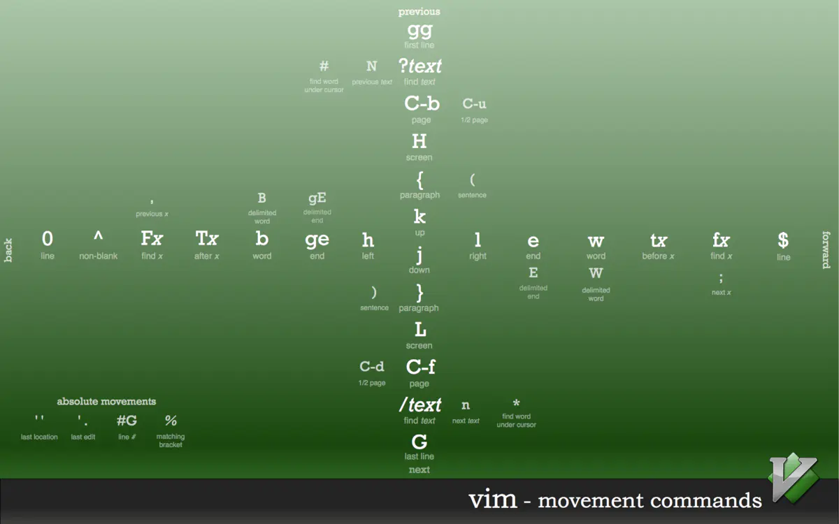 - 如果你想进行长距离的光标移动,使用光标移动命令就太耗时了,此时可以直接使用vim滚屏跳转命令,直接在屏幕中移动