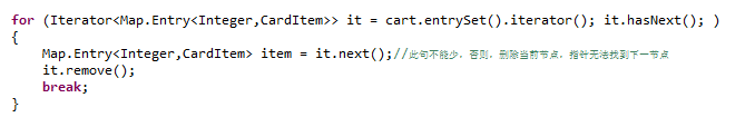 Map.Entry<String, String> item = it.next();//此句不能少,否则,删除当前节点,指针无法找到下一节点