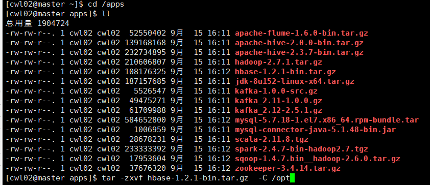 tar -zxvf hbase-1.2.1-bin.tar.gz -C /opt