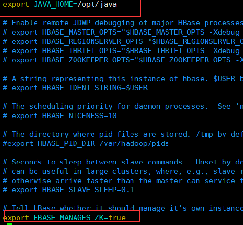 export HBASE_MANAGES_ZK=true 本就在文件中可以找到将前面的注释符号“#”删掉即可。