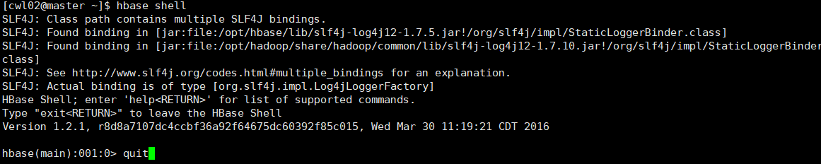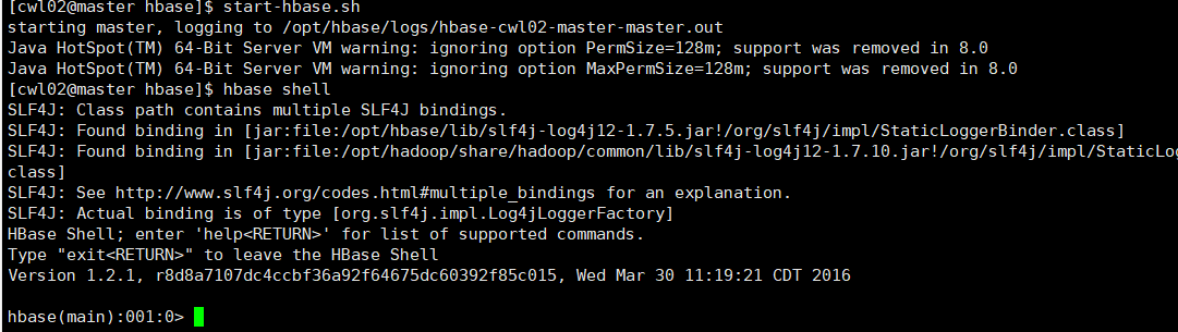 开始测试hbase ###启动前保证hadoop已经在启动状态