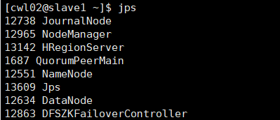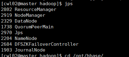 #因为本人在regionservers文件中添加了master,所以master也启动了HRegionserver#