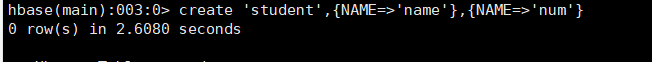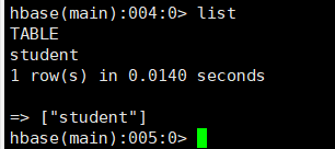 ①:建表 create 'student' {NAME=>'name'},{NAME=>'new'}