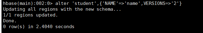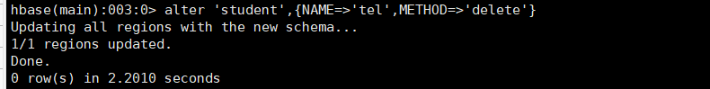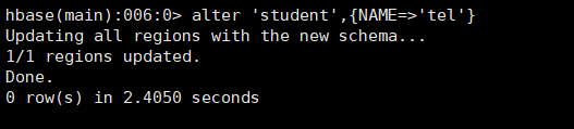 ④:修改表 alter 'student',{NAME=>'tel'}