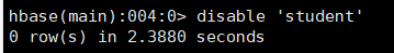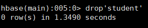 ⑤:删除表 disable 'student'(删除表之前先将其禁用)后 drop 'student'