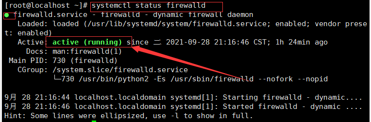 1.首先查看防火墙状态(绿色 active(running) 打开状态)