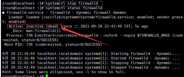 centos7关闭防火墙