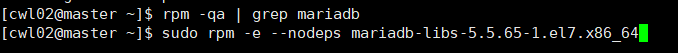 sudo rpm -e --nodeps mariadb-libs-5.5.65-1.el7.x86_64