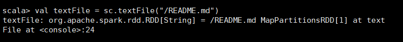 ①:val textFile = sc.textFile("/README.md")