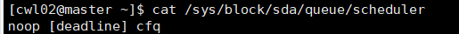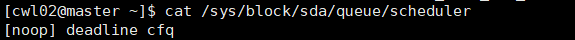 ②:重启后输入 cat /sys/block/sda/queue/scheduler 查看